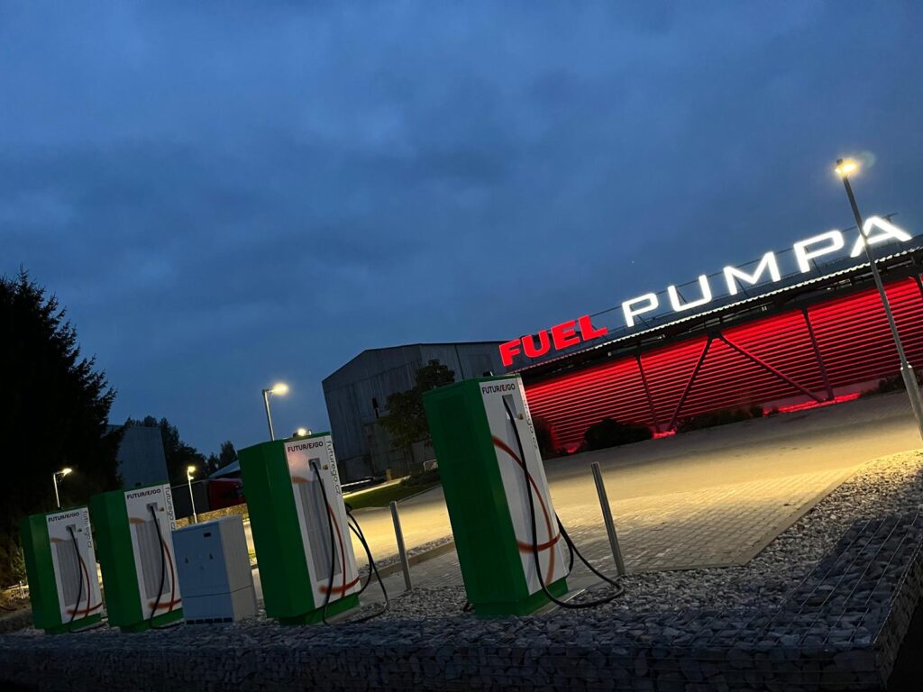 Dobíjecí stanice: 3× 180 kW CCS a 1× 50 kW